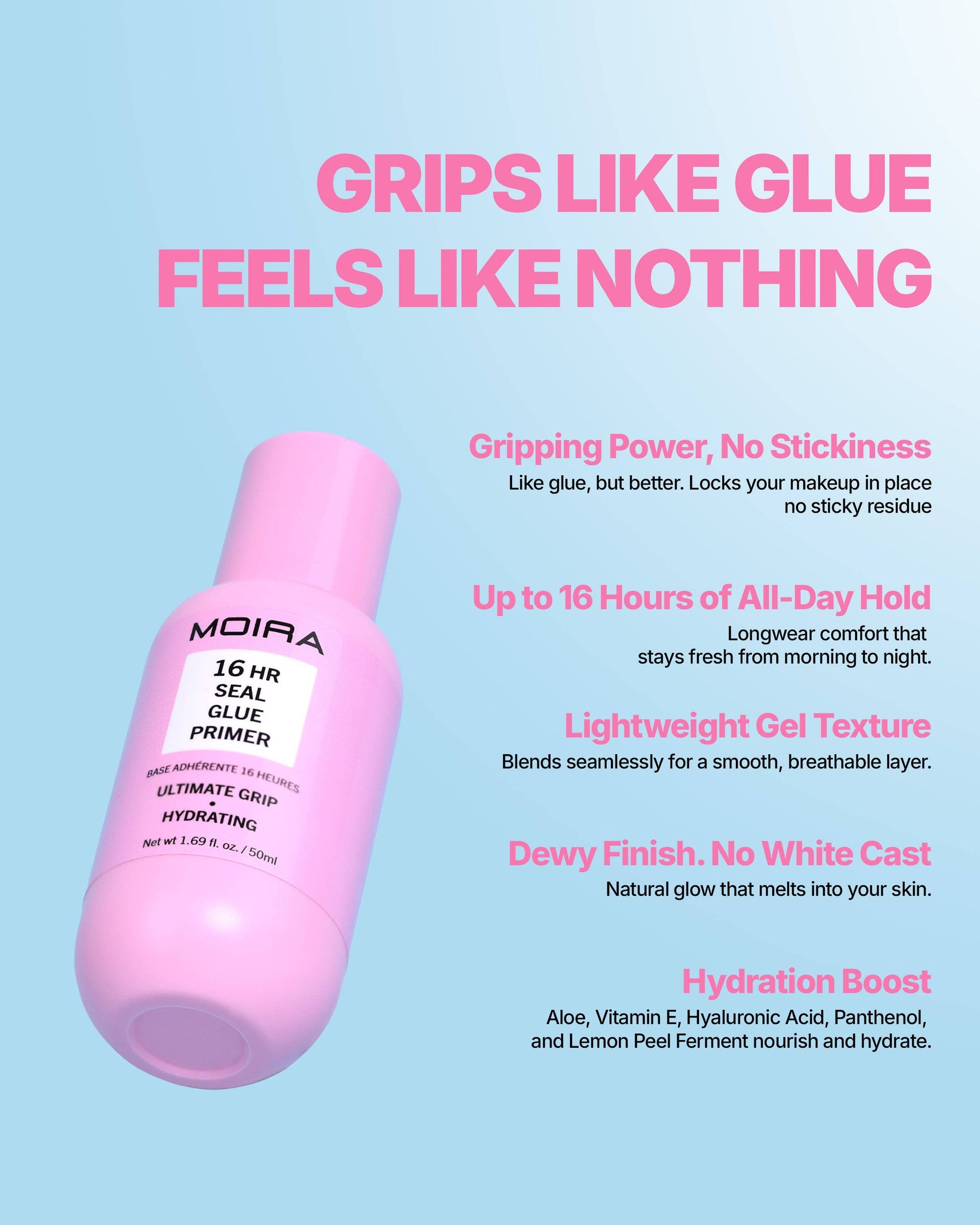Experience the power of a gripping primer with a lightweight, non-sticky feel—just like glue, but without the tackiness! This hydrating gel formula seamlessly blends into the skin, providing a natural dewy finish while locking down your makeup for up to 16 hours of flawless wear. Enriched with Aloe Barbadensis Leaf Extract, Vitamin E, Hyaluronic Acid, Panthenol, and Lemon Peel Ferment Extract, it keeps your skin hydrated, smooth, and comfortable all day. Say hello to long-lasting makeup, a flawless finish, and effortless all-day wear!