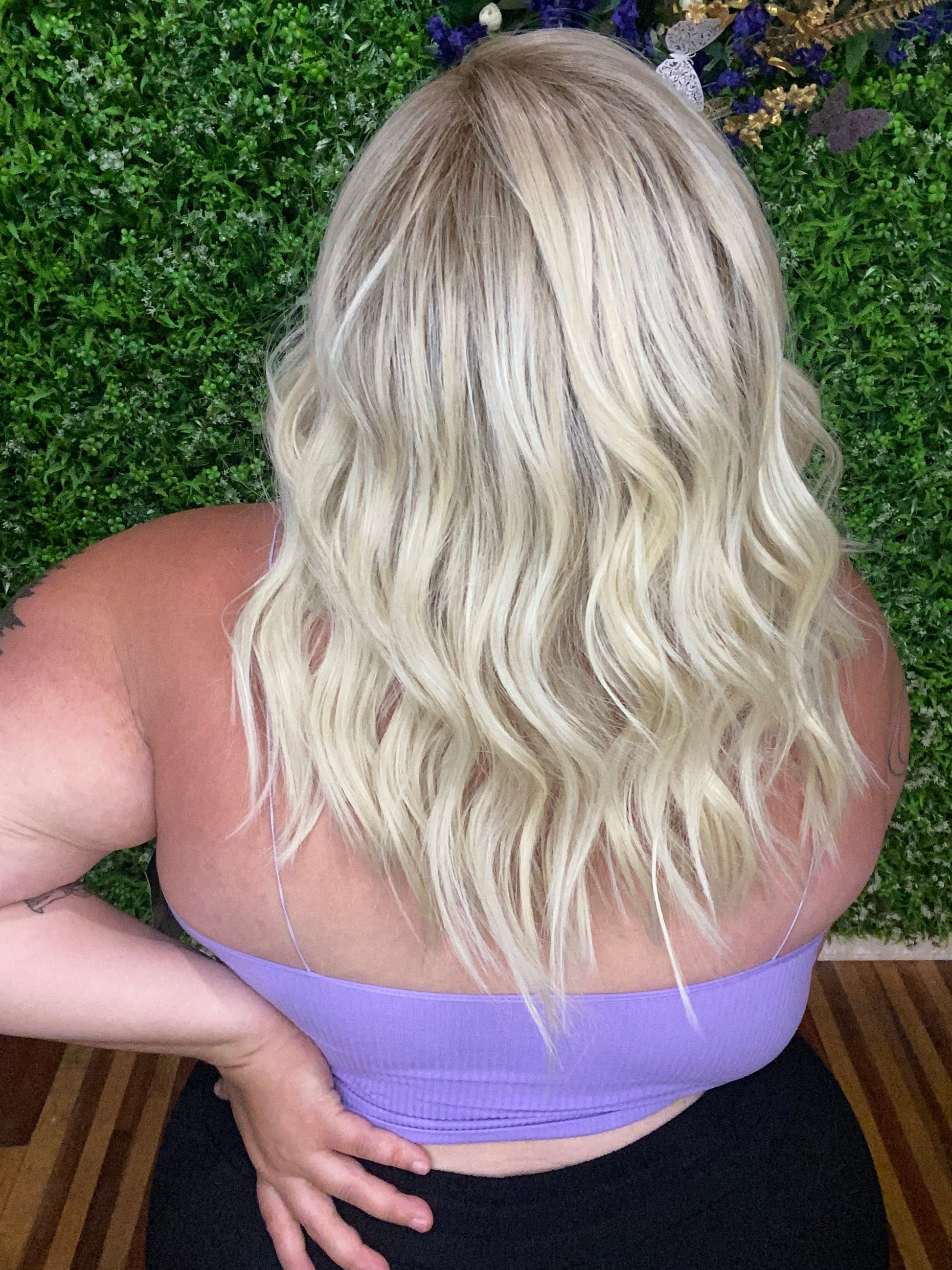Meet Austin, formerly known as Samantha! This gorgeous mid-length style features barrel curls with cute straight tips! Austin is featured in our gorgeous Hollywood Blonde color.