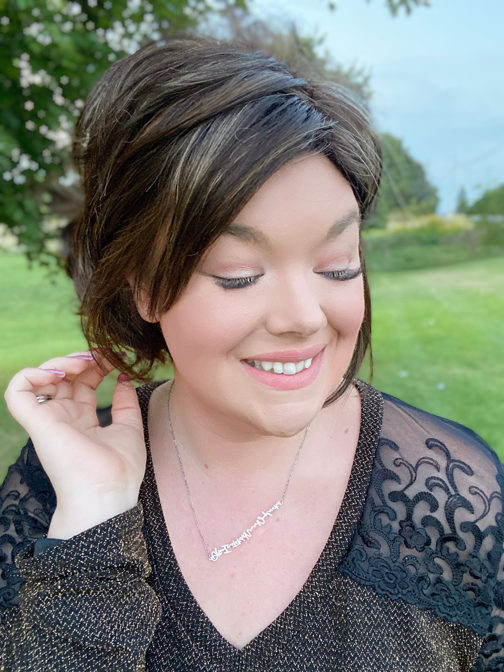 Meet Charlotte! This wig is a free parting full machine weft cap, no lace, but no worries, she features a beautiful swoop bang! Charlotte is our favorite Cola Swirl color!