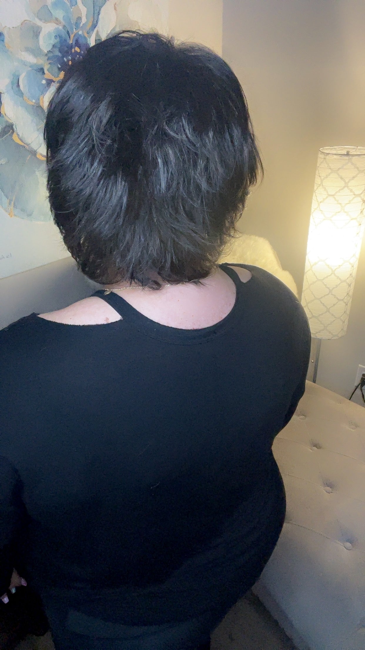 Meet Cheryl!! This super sexy shortie is a wispy shag cut with layers and texture. Cheryl is all about living the life, in style and is featured in our stunning Cocoa Bean color.