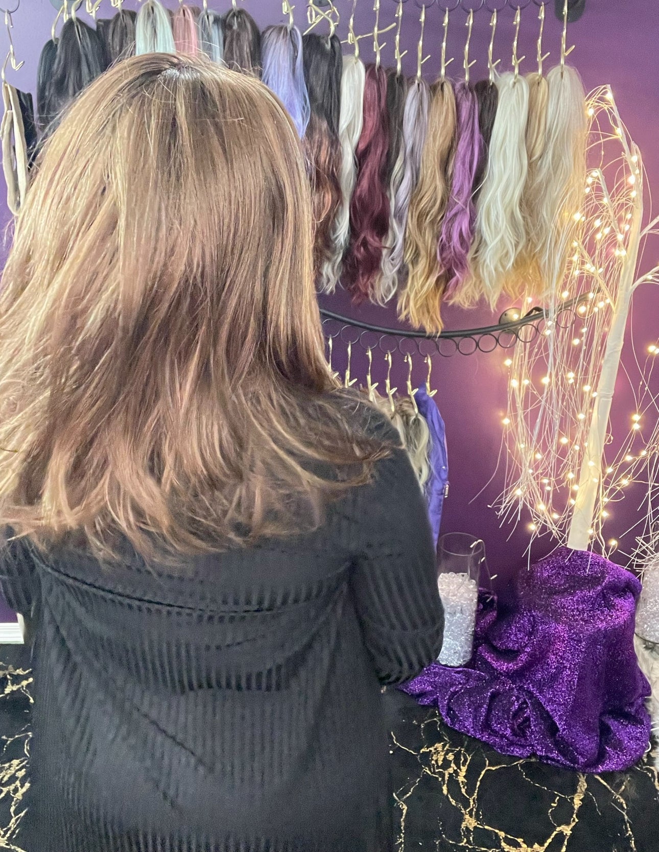 Meet Demi! This wig has part-anywhere, face-framing layers graduating into feathered layers that fall to the mid-back! Demi is featured in our favorite Dark Amber!!