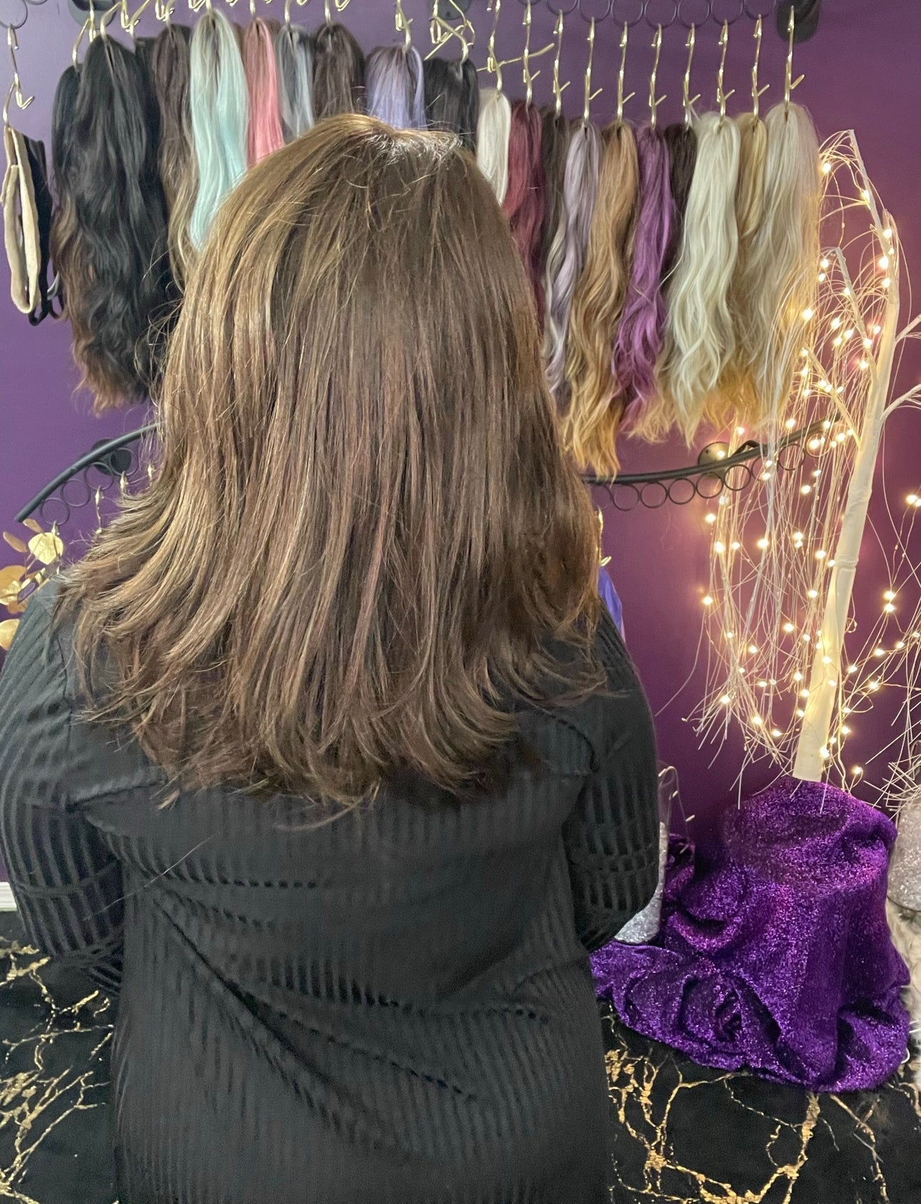 Meet Demi! This wig has part-anywhere, face-framing layers graduating into feathered layers that fall to the mid-back! Demi is featured in our favorite Walnut Brown !!