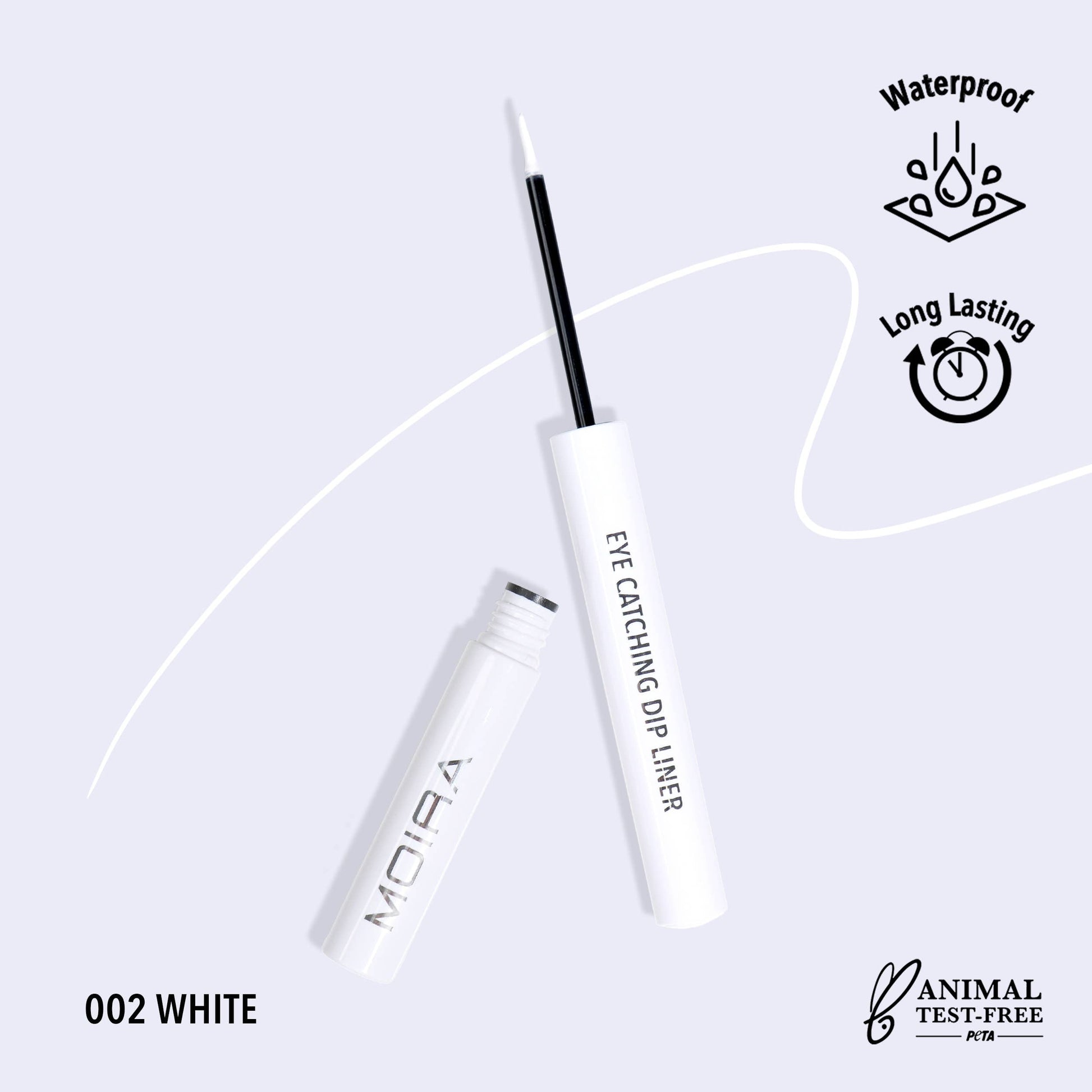 MOIRA Eye Catching Dip liner is the ultimate long wear eyeliner, completely waterproof and smudge resistant. The fine, flexible brush tip pen for precision and easy application will guide the line to a striking finish and can be used on eyes, face, and body.