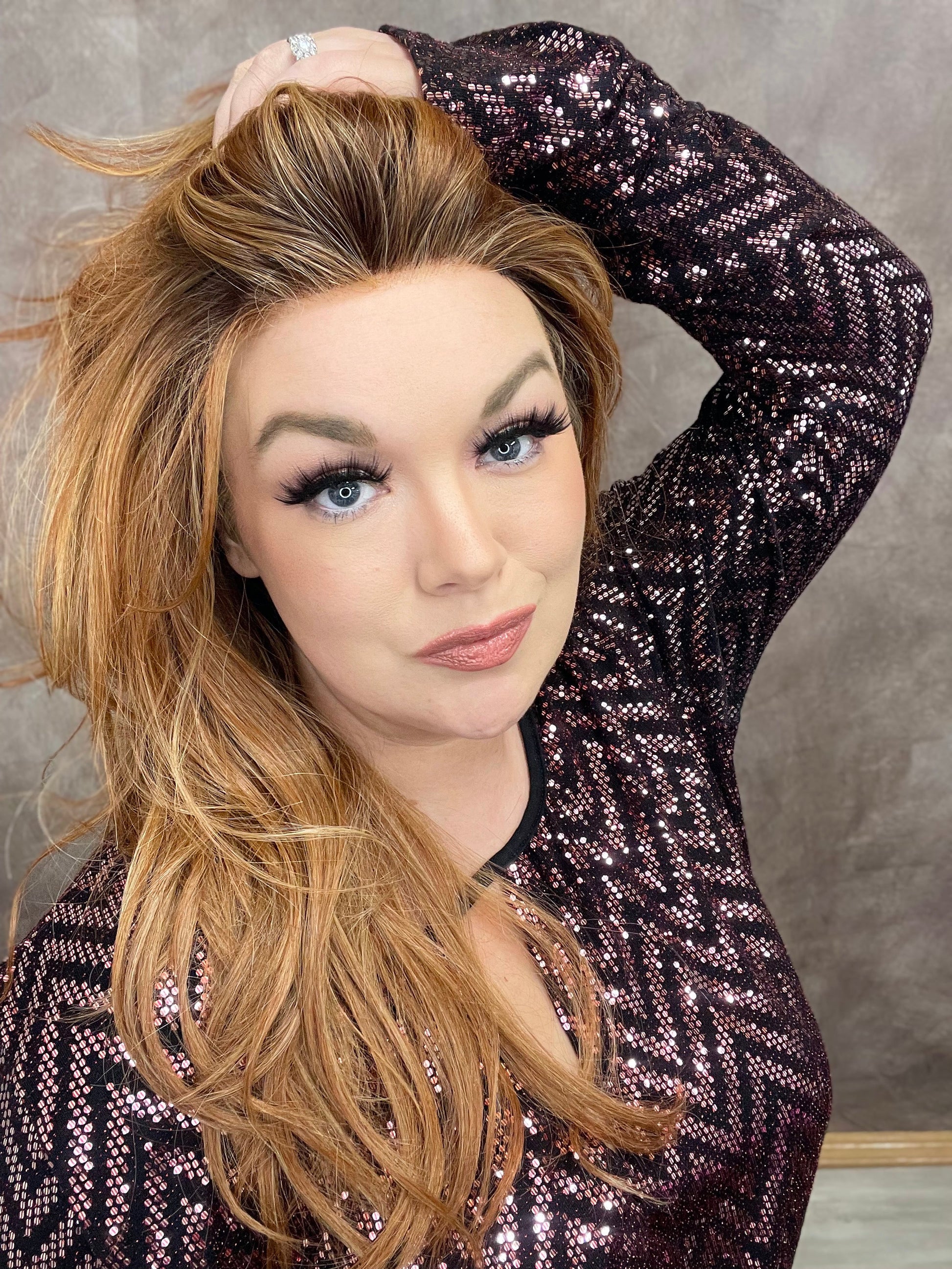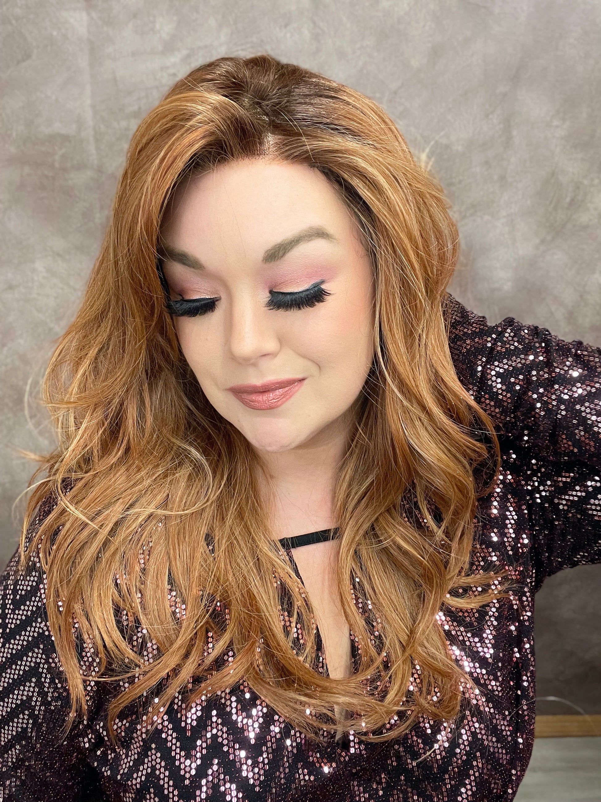 Meet Finley, formerly known as Mona! Finley is a gorgeous long luxury wiggie that has beautiful layered loose waves. Finley features our stunning Strawberry Kiss color.