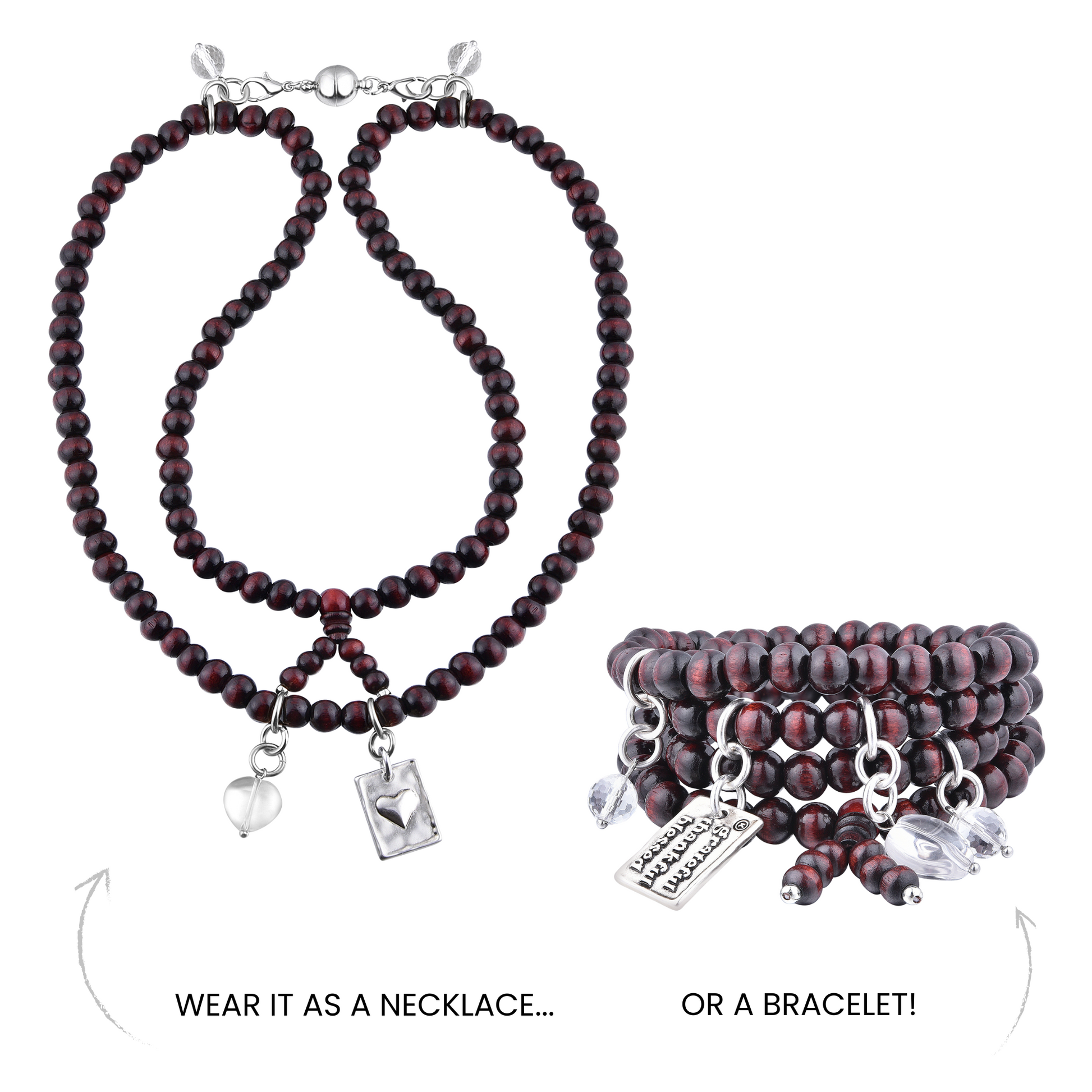 Grateful Thankful Blessed Heart Wood Boho Wrap Bracelet/Necklace