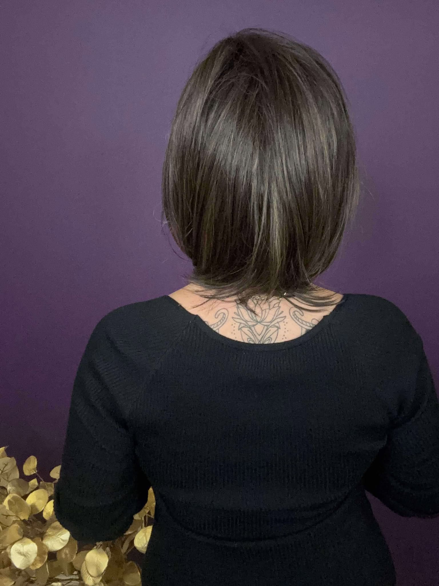 Meet Gwen ! This beautiful shoulder-kissing length bob has the perfect amount of layers for that on the go lifestyle. Gwen is featured in our stunning Dark Roast Delight color.