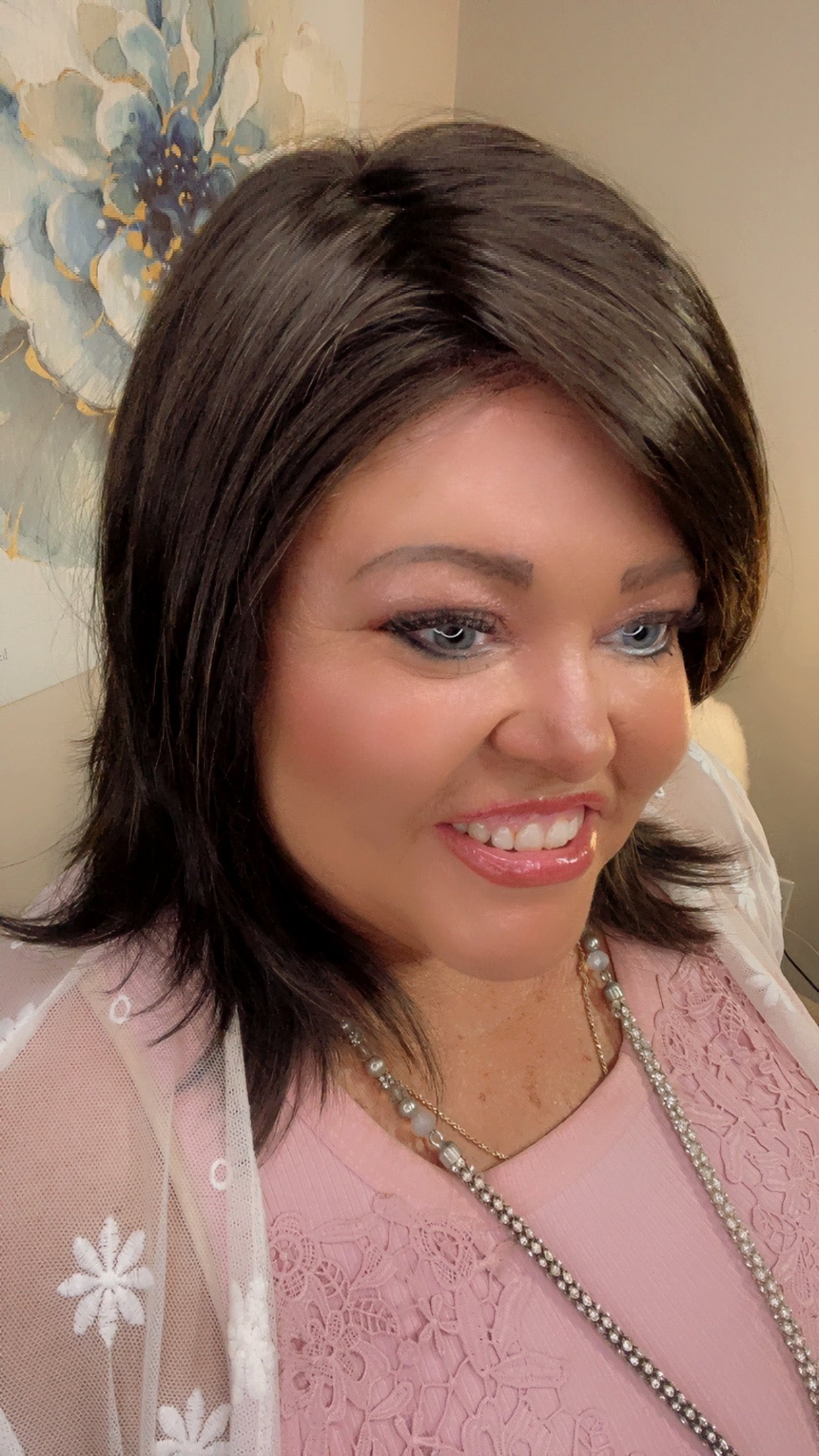 Julia is a layered mid-length style with sweeping side fringe and soft, contoured volume. Her dynamic silhouette adds natural lift and movement, while the angled layering flatters a wide range of face shapes. With a lace part and lace front construction, Julia offers elegant structure and believable realism straight out of the box.