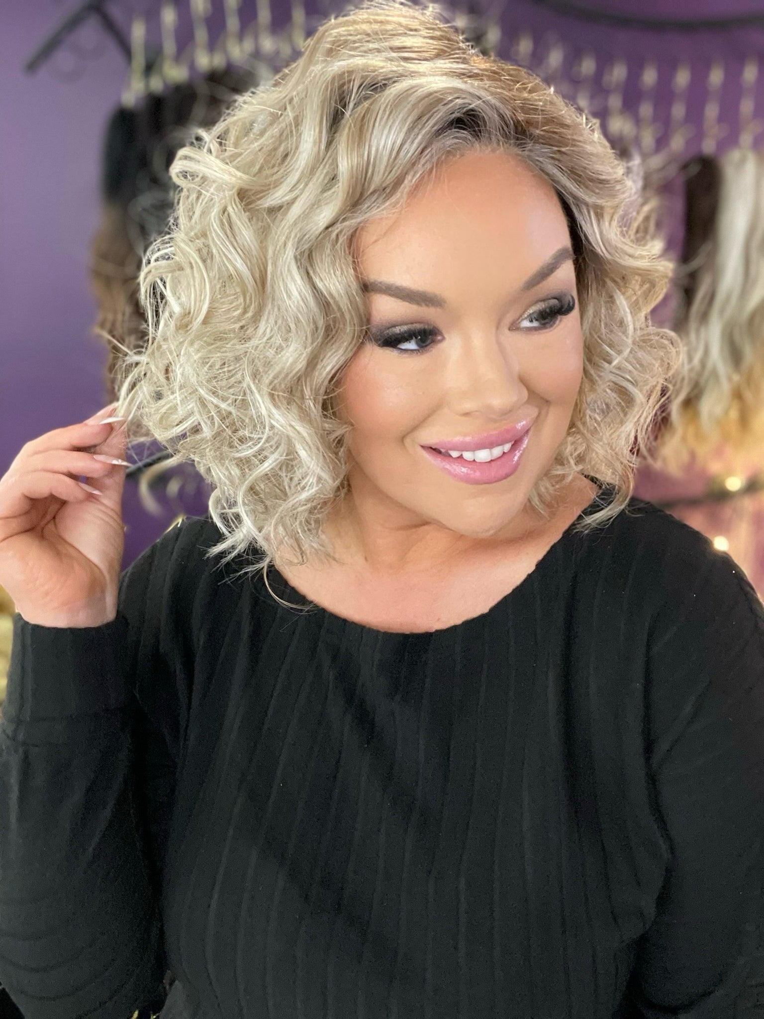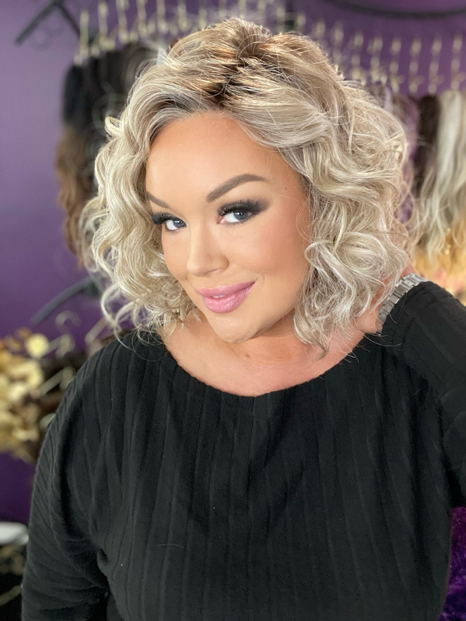 Meet Kate!! Ever wanted a perfect perm wavey hairstyle?! Well look no further, this wiggie is PERFECT for you. Kate is a gorgeous mid length wig that is featured in our stunning Smoking Hot Blonde color.