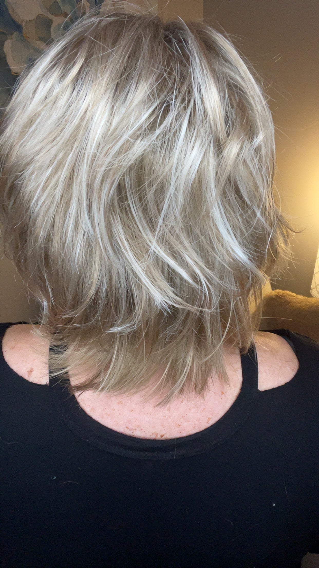 Meet Lola! This gorgeous pixie cut shag has an extended nape and plenty of face framing length on the sides to frame the face or be worn behind the ears. She is featured in our stunning Chiffon Candy color.