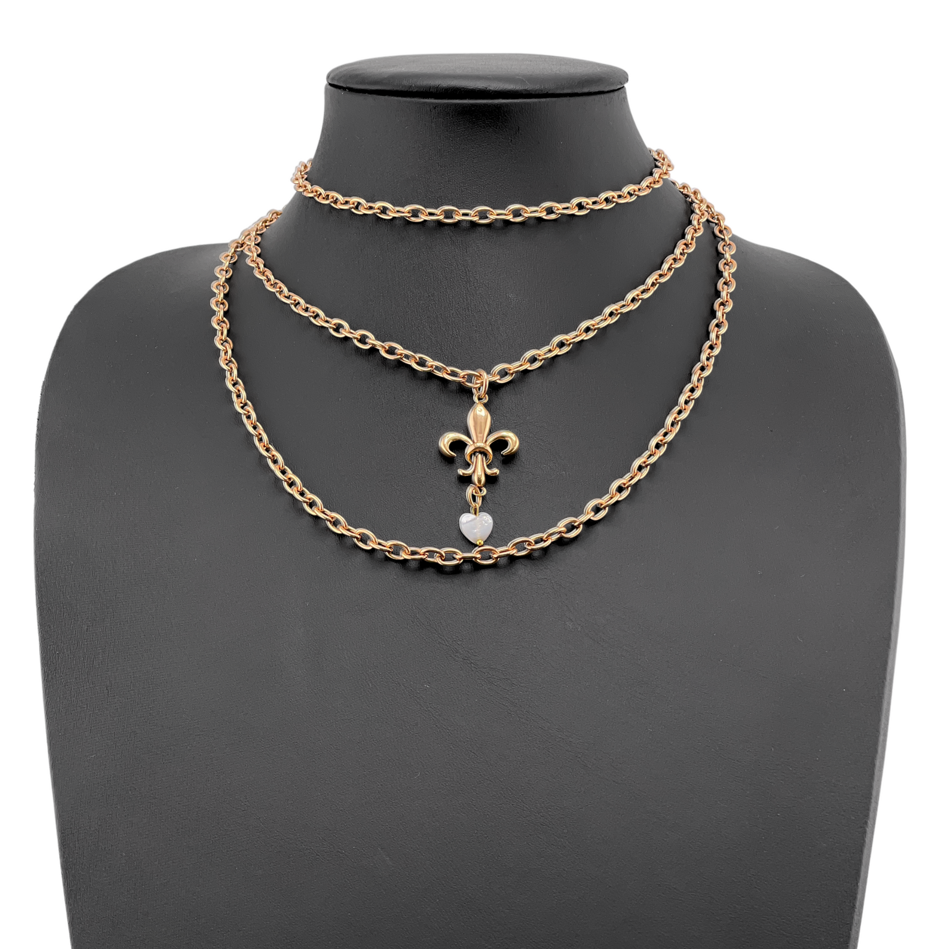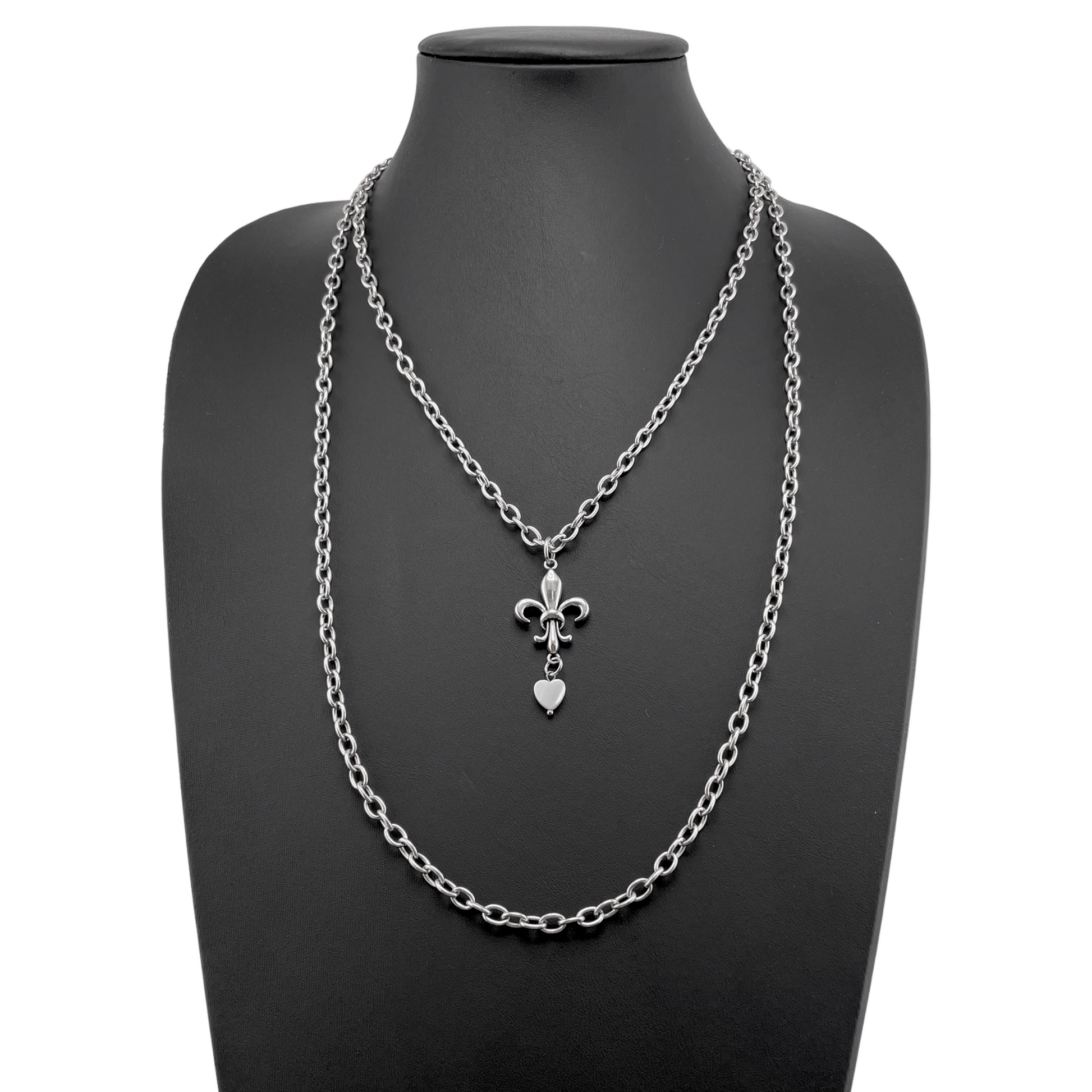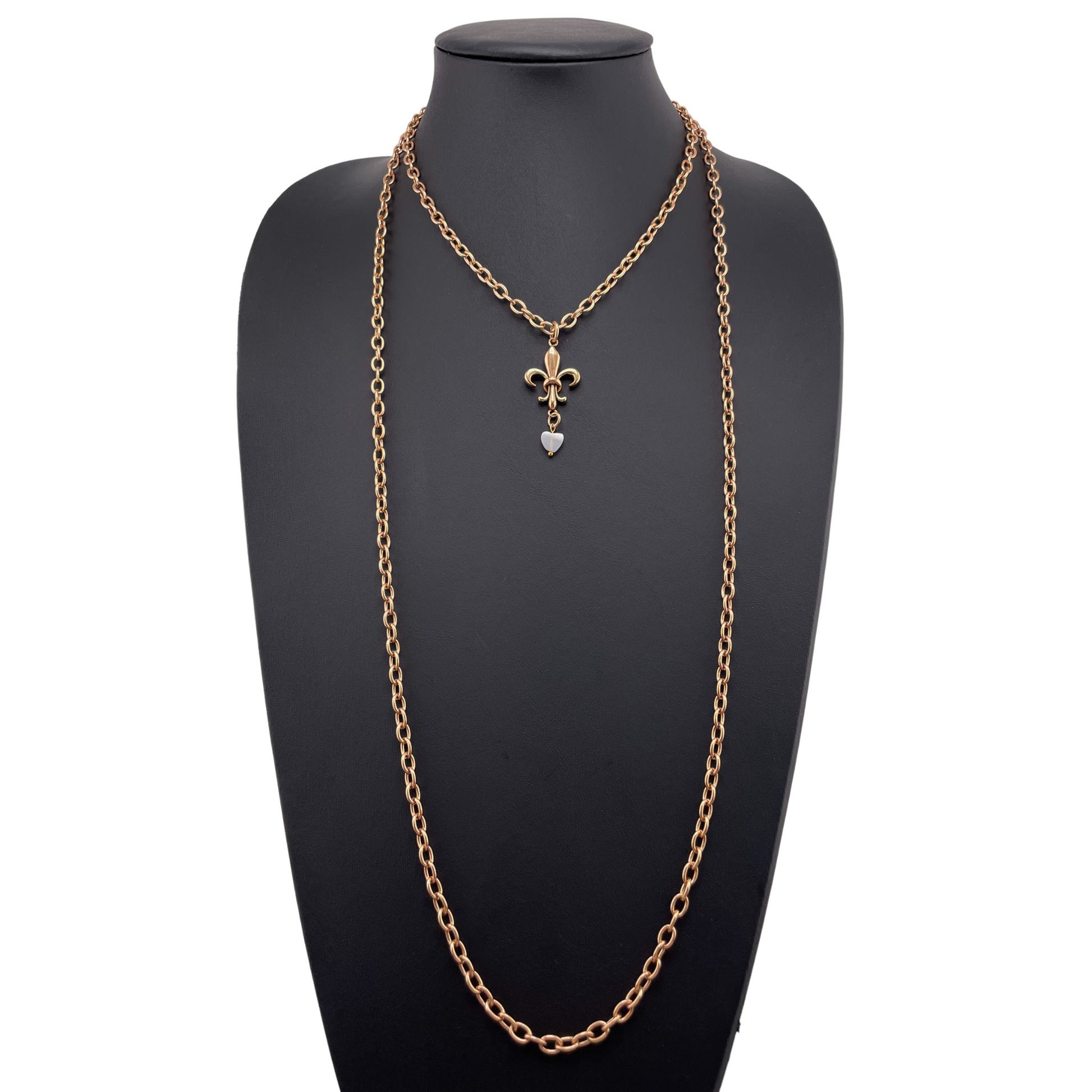 ⚜ Essential chain necklace with Fleur-de-Lis pendant and pearl heart accent.