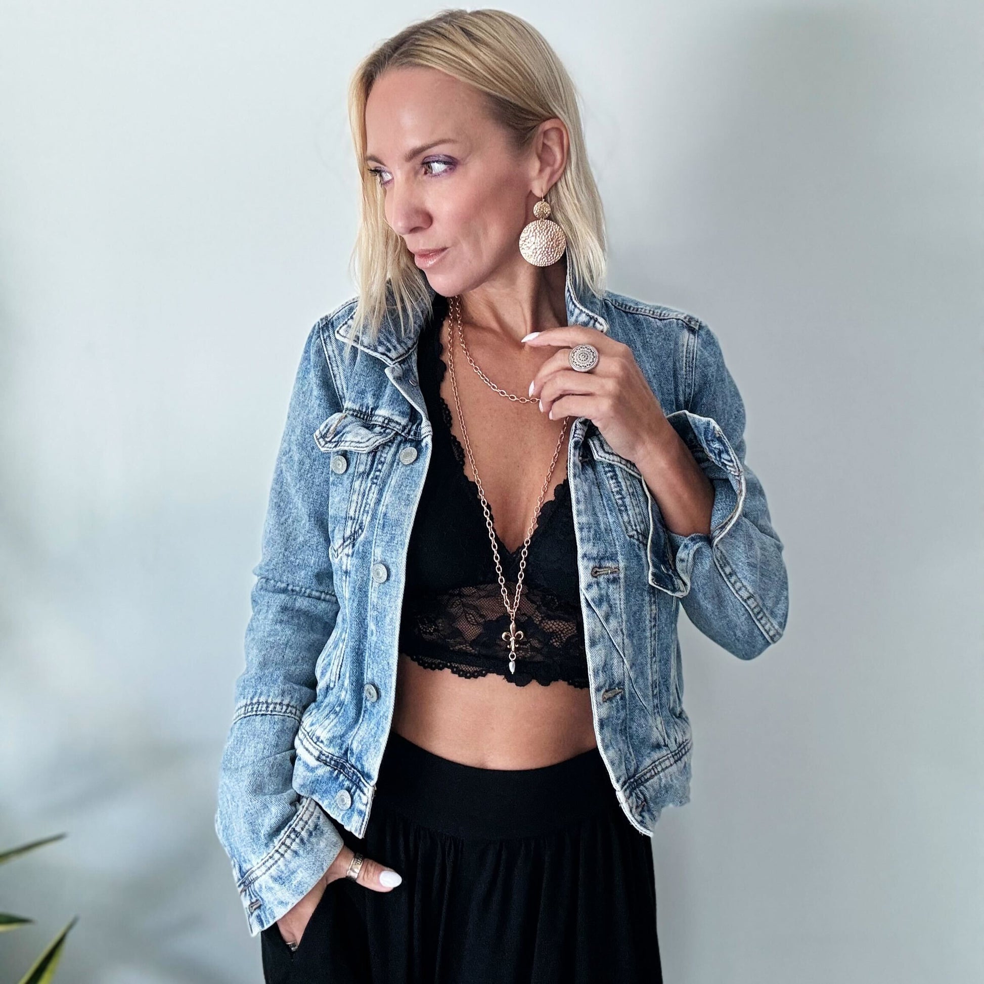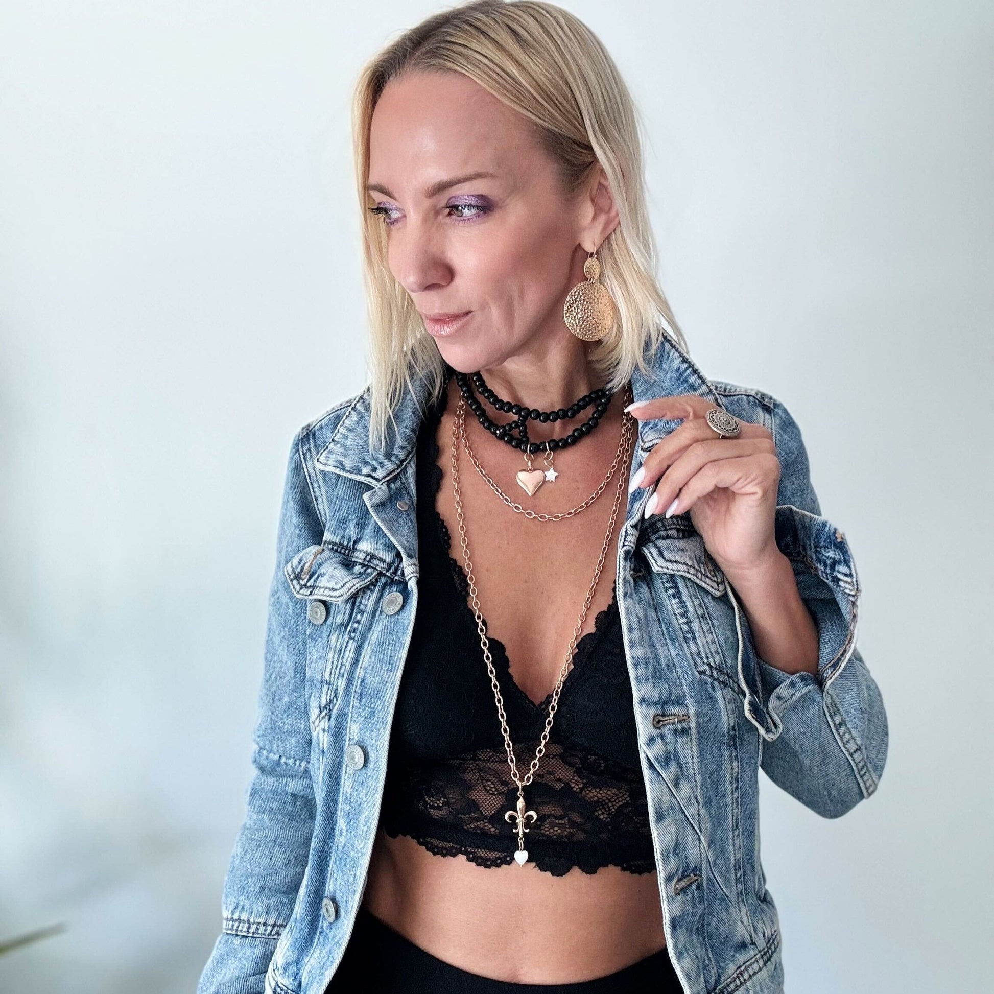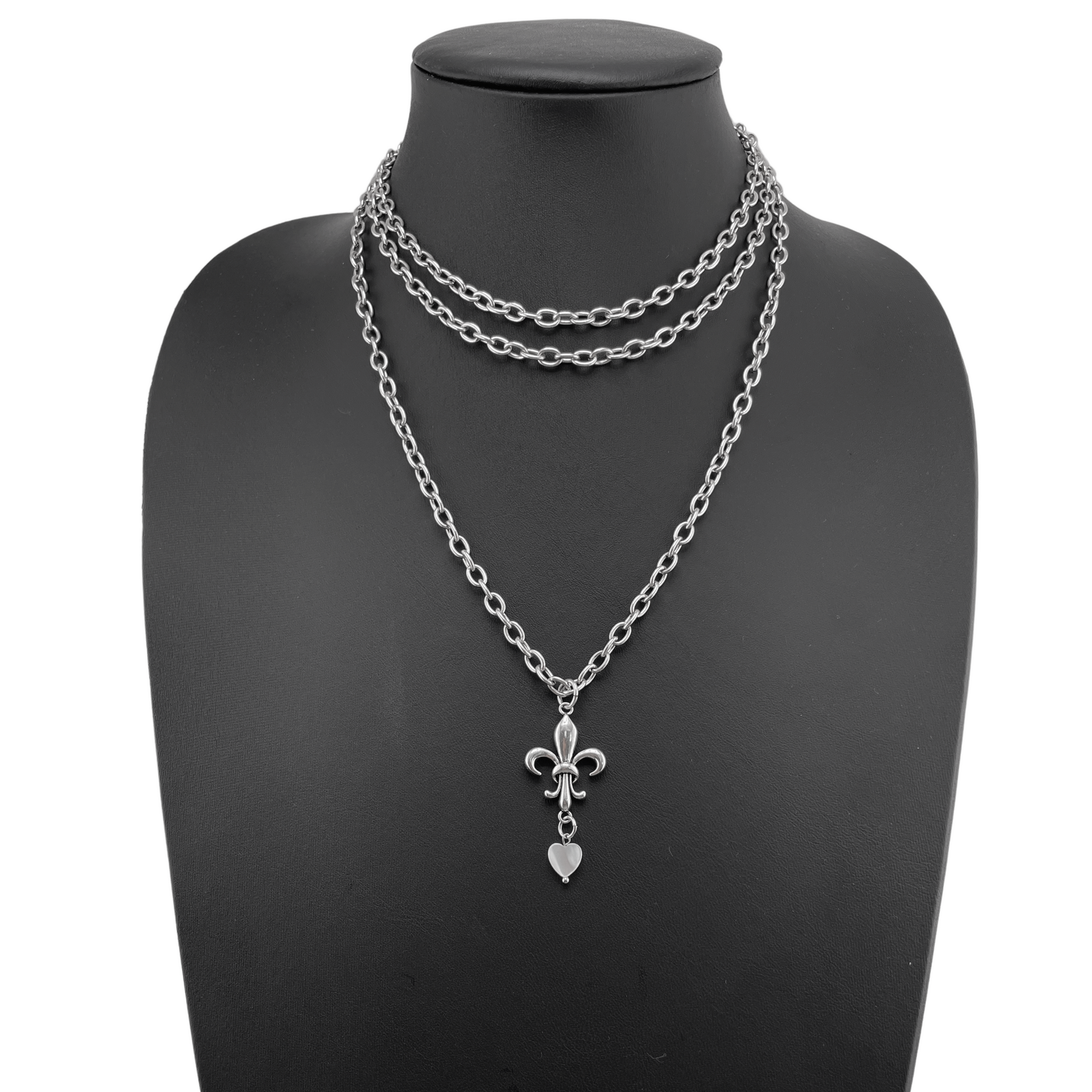 ⚜ Essential chain necklace with Fleur-de-Lis pendant and pearl heart accent.