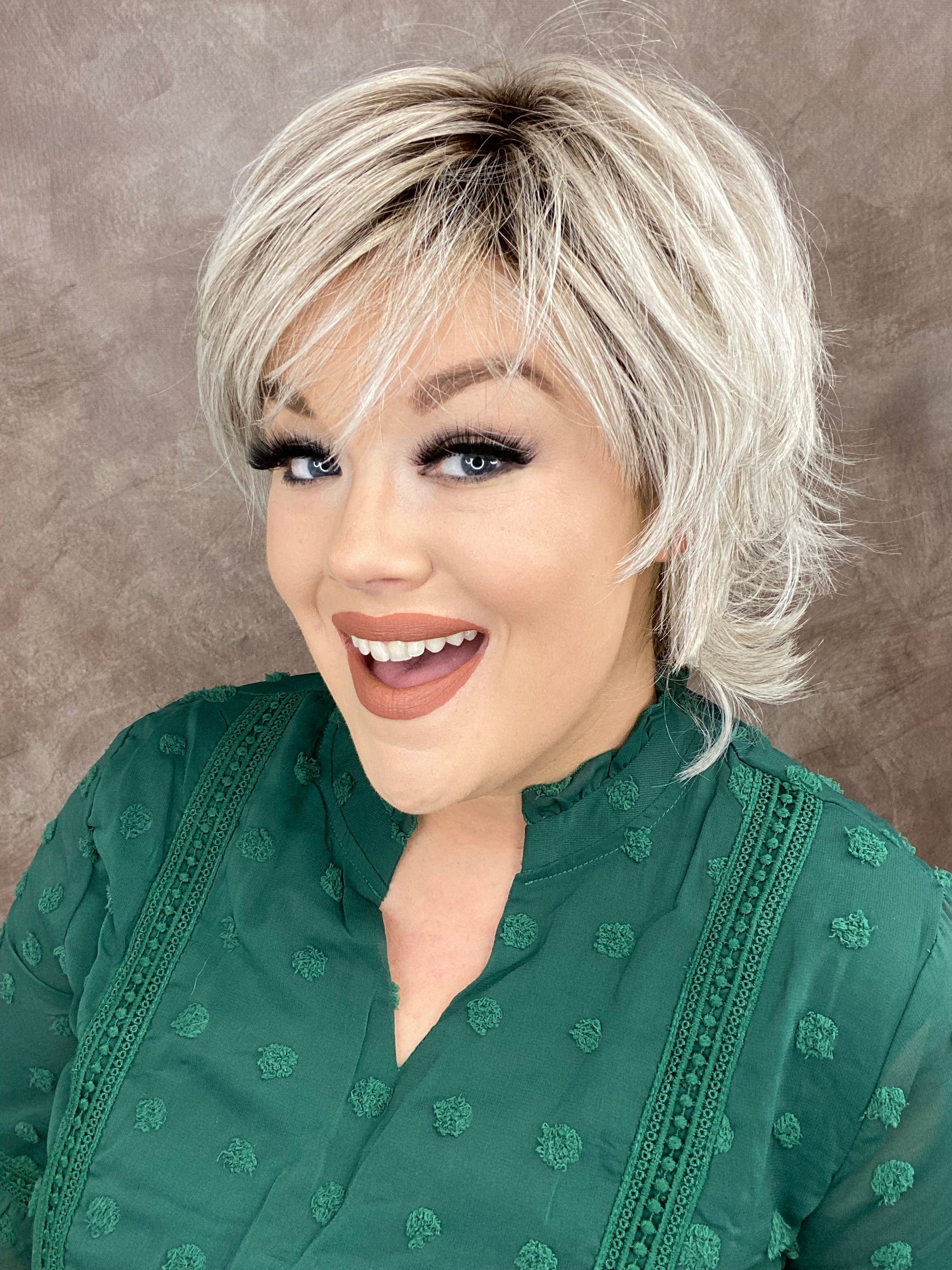 Meet Nia! Look at this jaw dropping shortie!! Nia is a beautiful razor-cut shag that is featured in our stunning Frosted Blonde color!