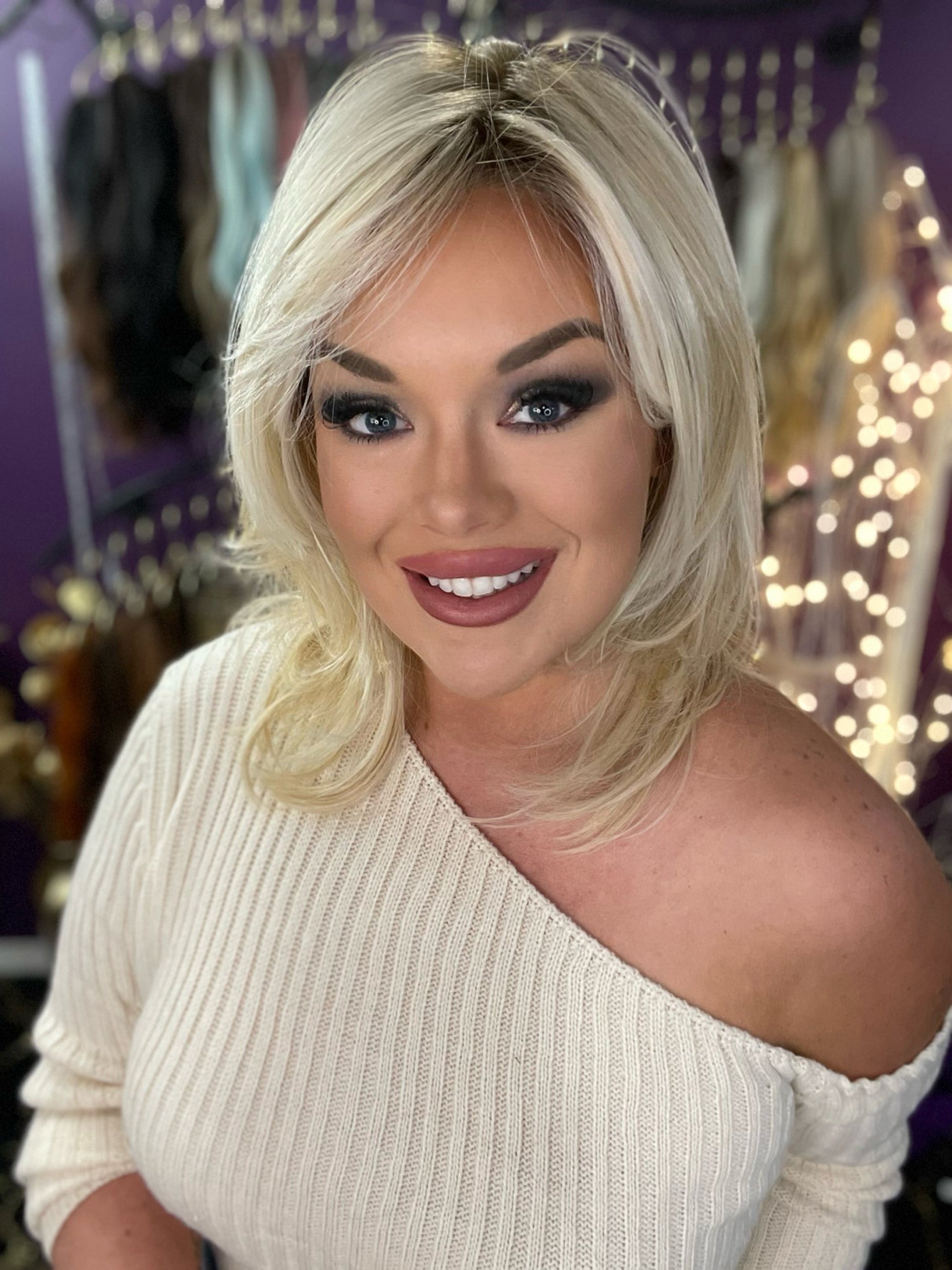 Meet Nicola! She is a lovely stylish lady! This lux lady features a super blended lace front, mid-length luscious blonde locks, and a flirty bang. She features a gorgeous California Blonde.