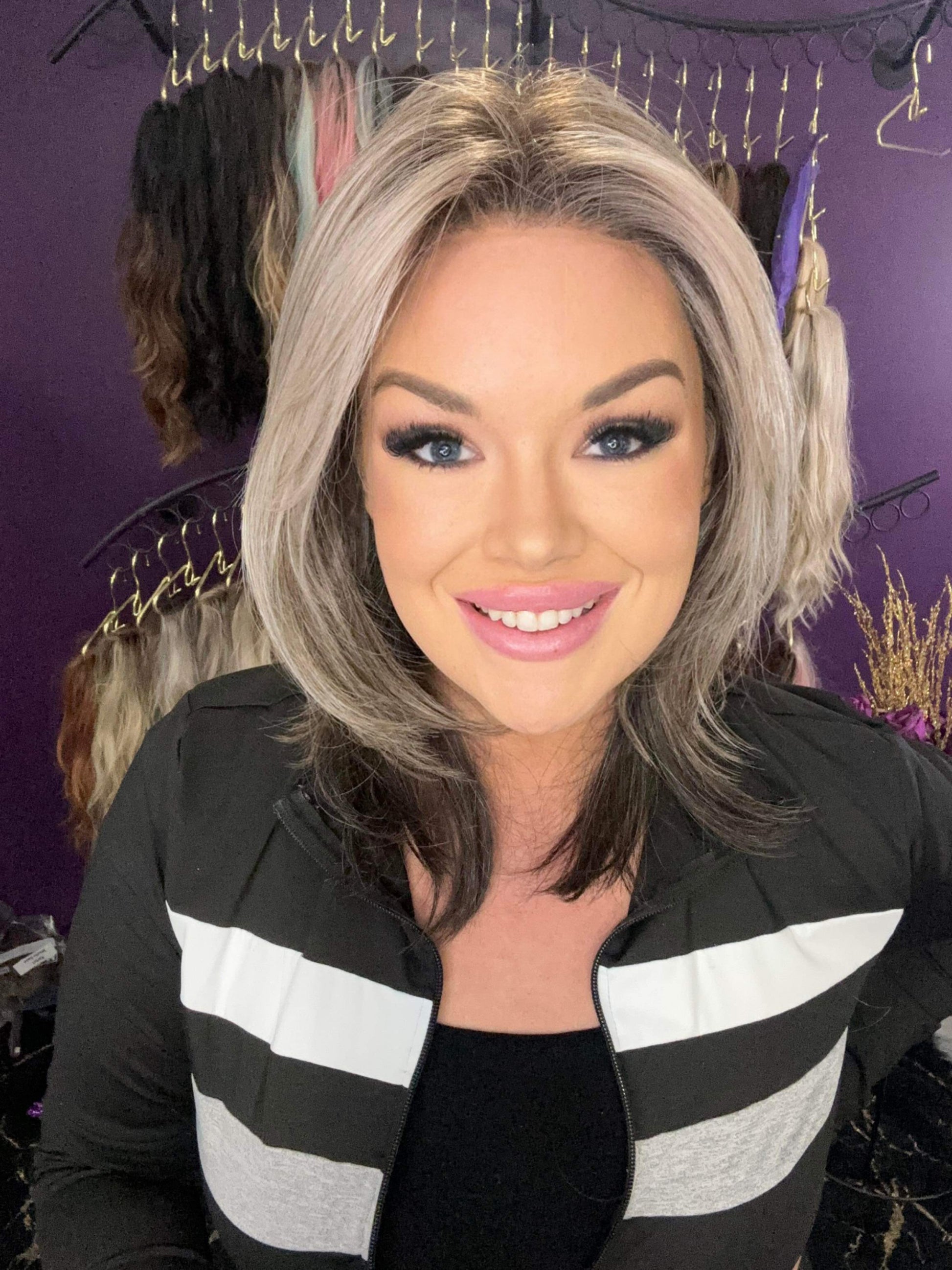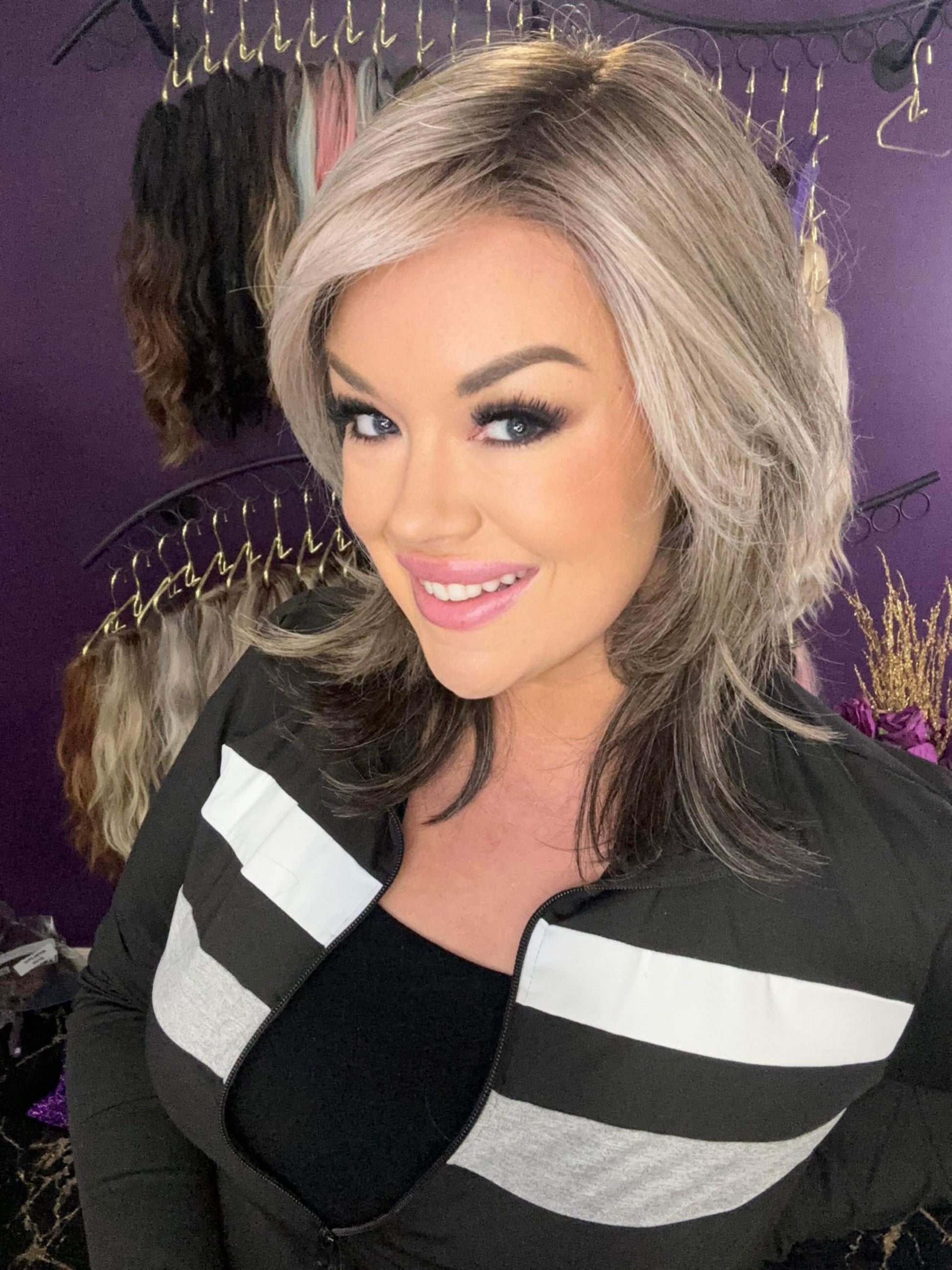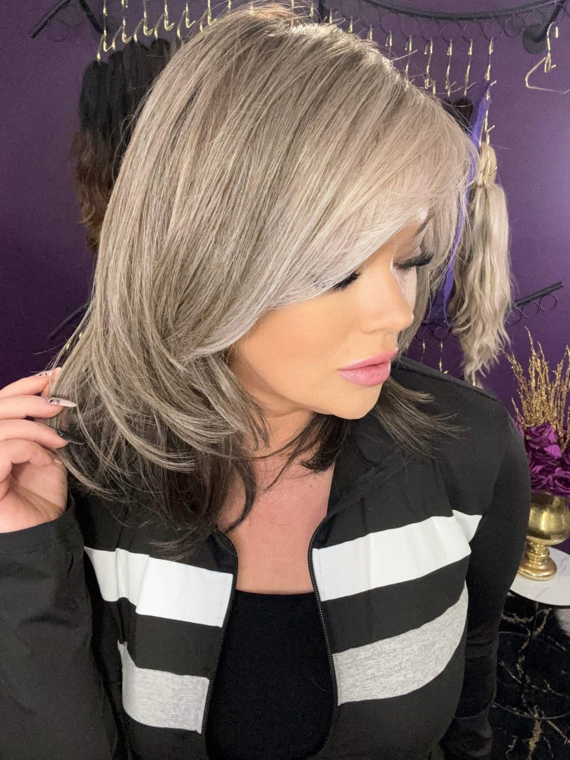 Meet Nicola! She is a lovely stylish lady! This lux lady features a super blended lace front, mid-length luscious blonde locks, and a flirty bang. She features a gorgeous Silver Fox.