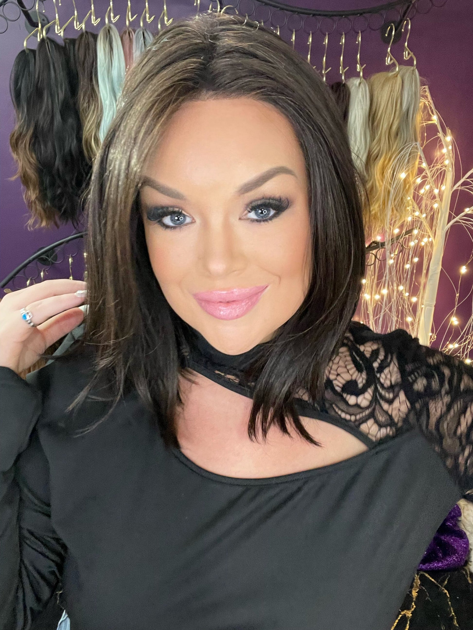 Meet Phoebe! Phoebe is a beautiful lob-style beauty, that is featured in our stunning Espresso Brown color.