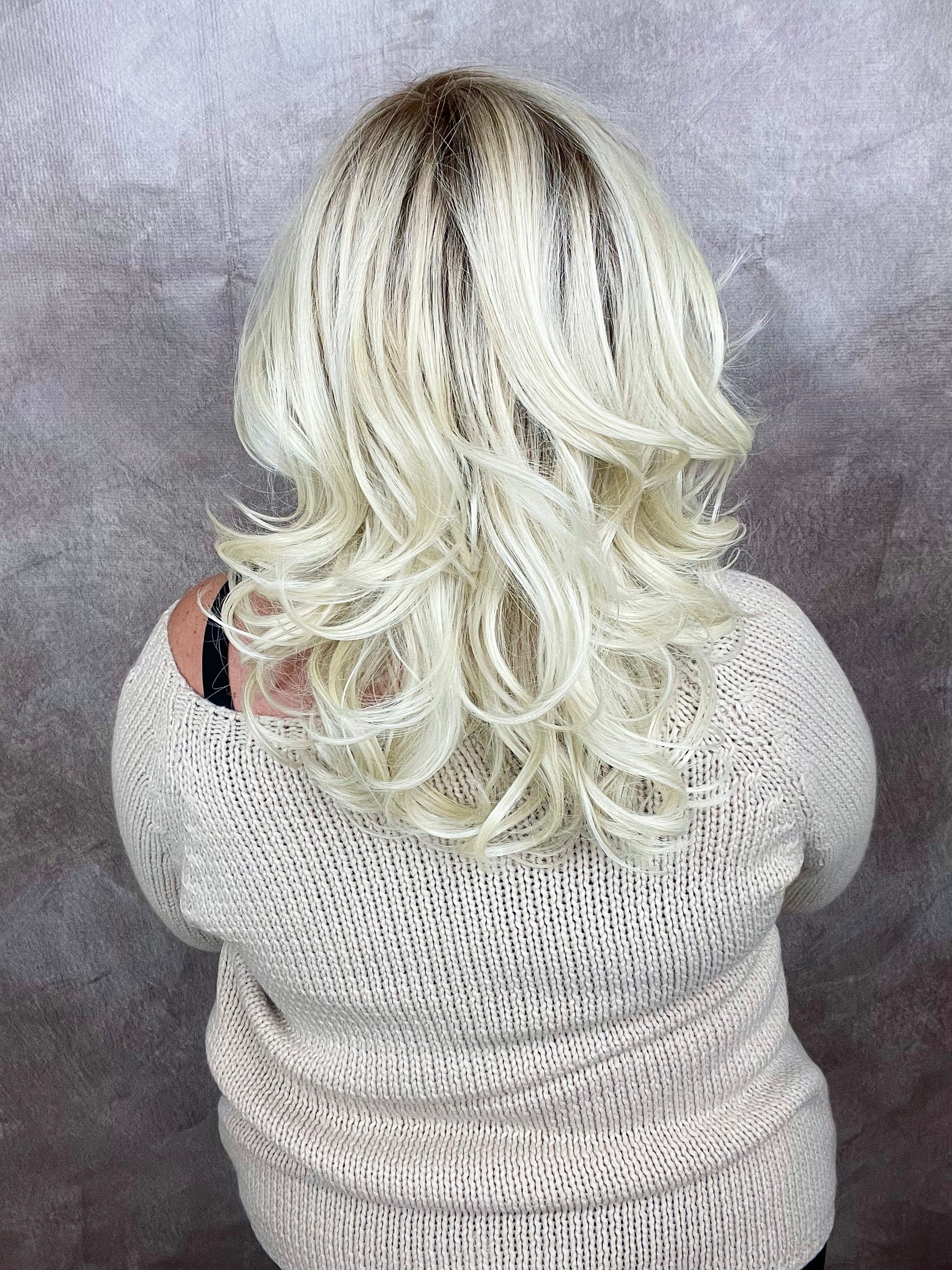 Meet Sahara, formerly known as Neva. This wig is a gorgeous mid-length luxury with layers that don't quit! Sahara is featured in our stunning Hollywood Blonde color.