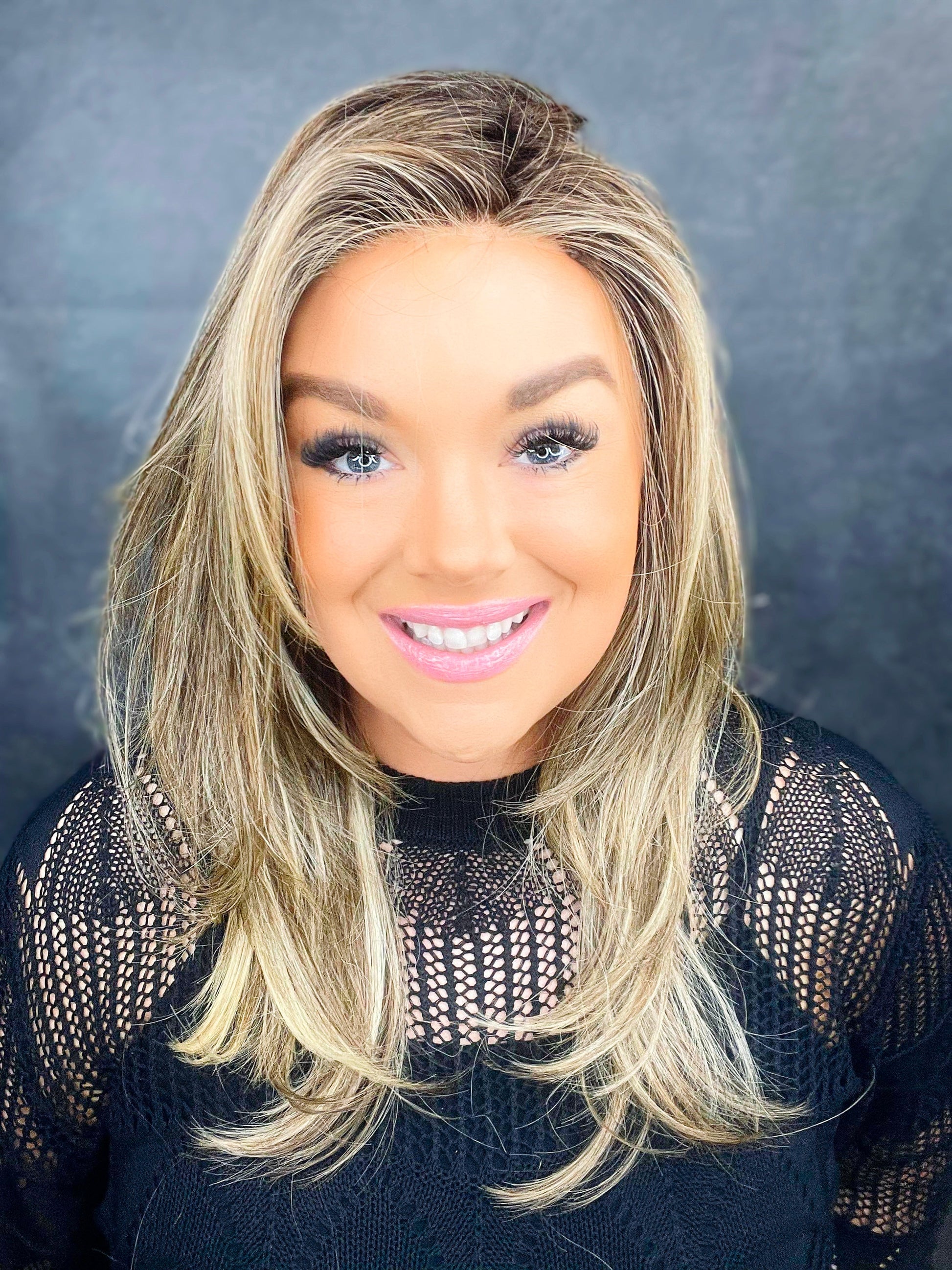 Meet Serena, formerly known as Caroline! Serena is our beautiful long length with a layered swoopy bang that is featured in our gorgeous Seduction Blonde.