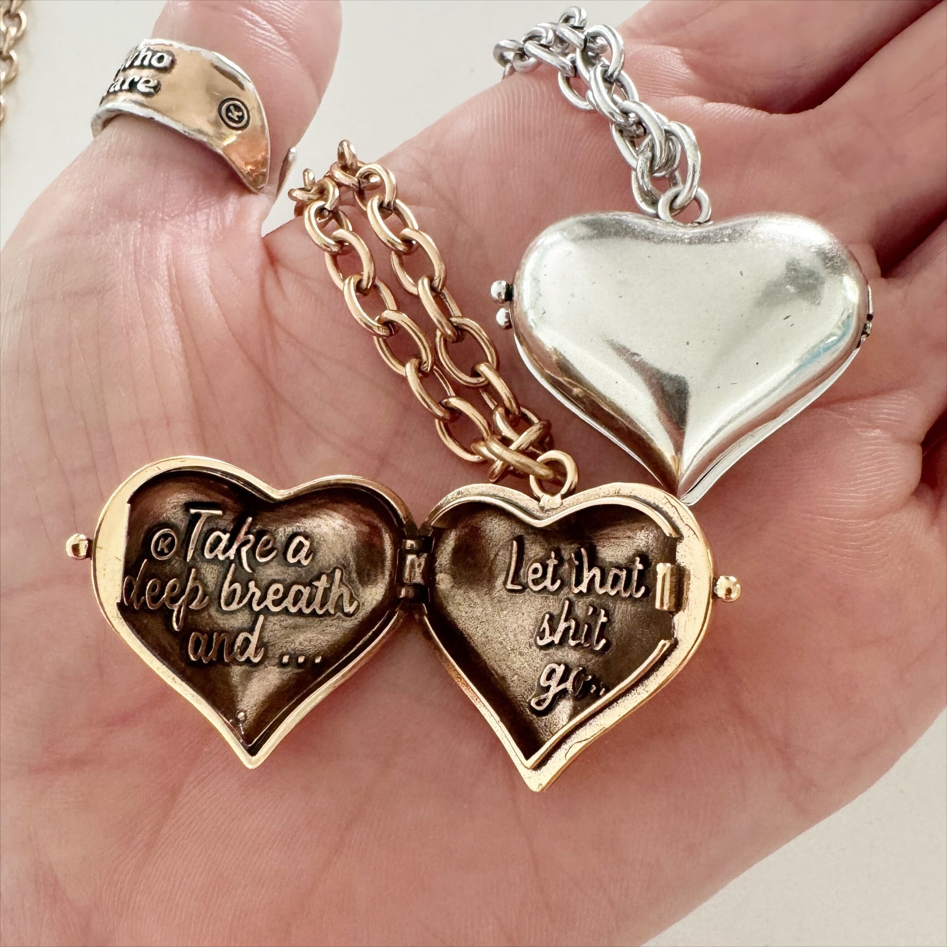 Take a Deep Breath and Let That Shit Go Heart Locket Essential Necklace