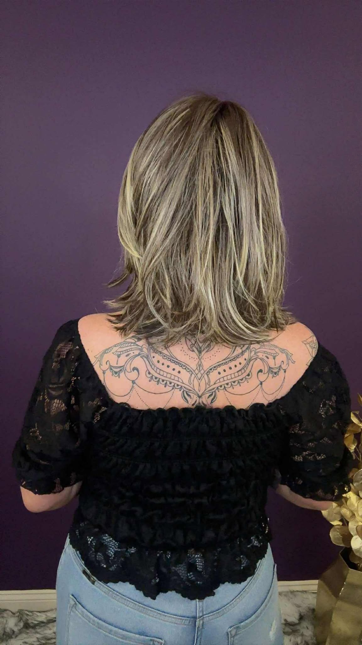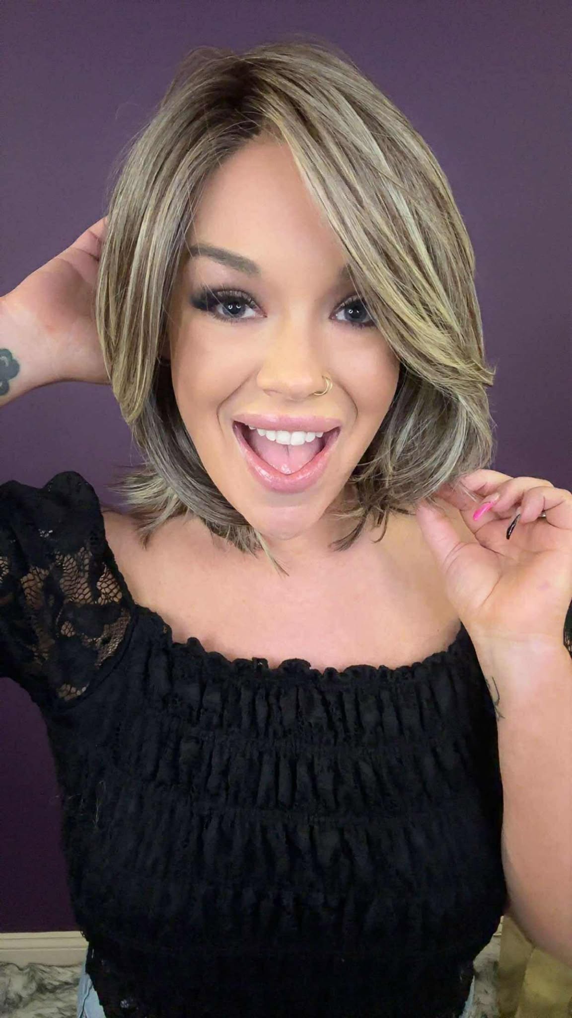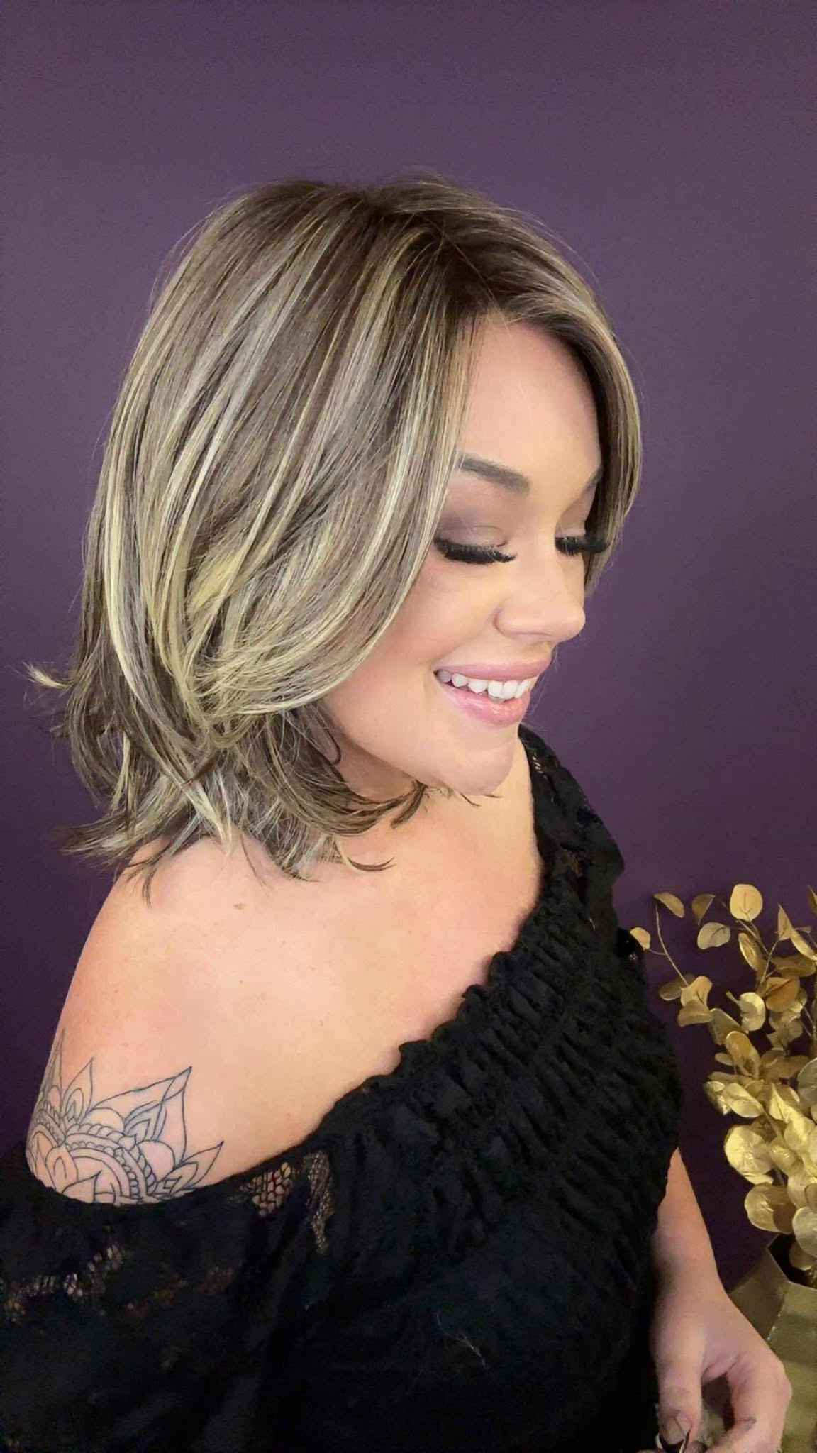 Meet Tori! This beautiful shoulder length cut that has light, wispy layers that delicately frames the face. Tori is featured in our stunning Maple Sugar Drizzle color.