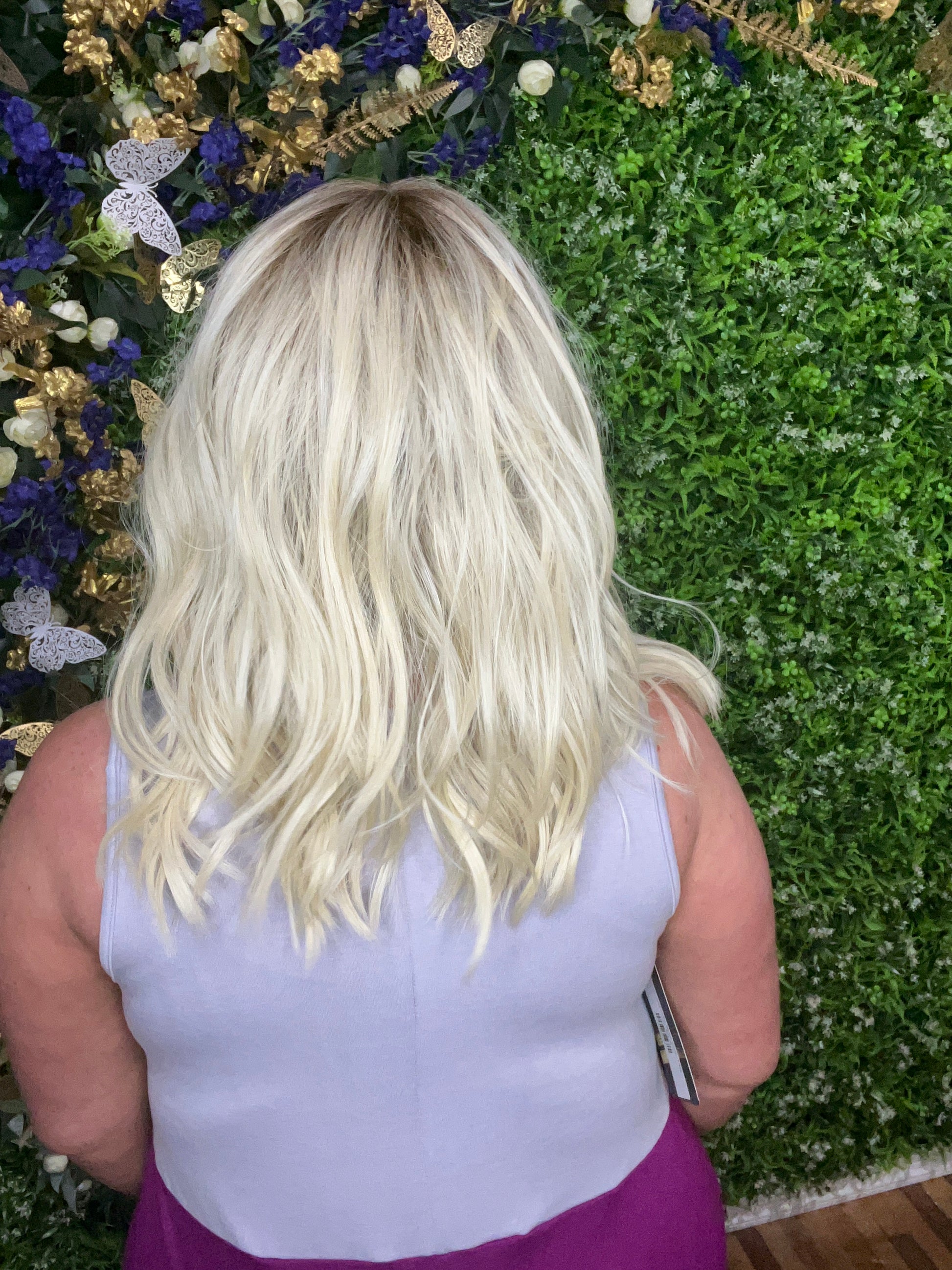 Meet Tracy! Tracy is a sexy mid length with lots of sassy waves and a super adorable bang. This wig features our STUNNING Hollywood Blonde color.