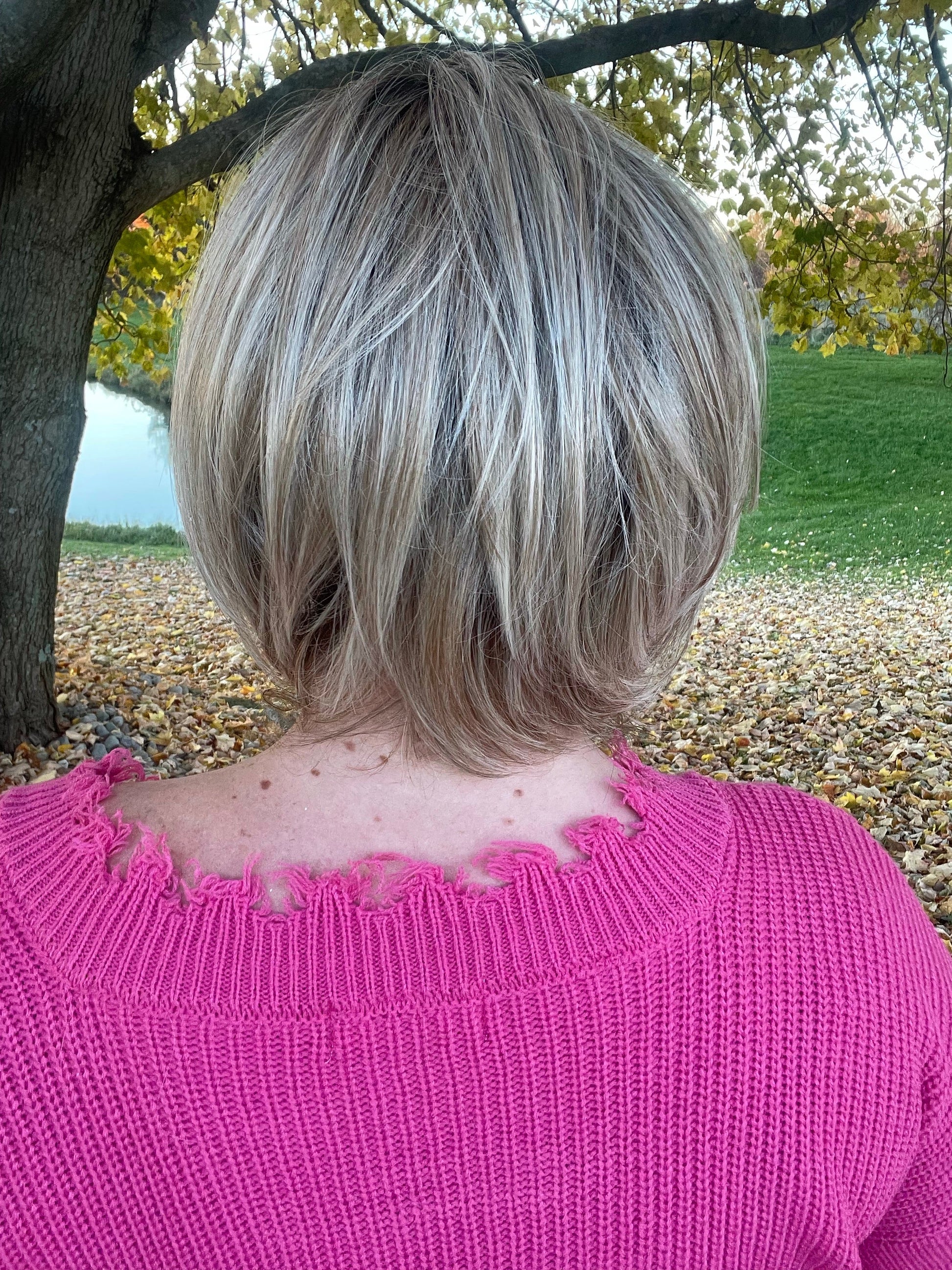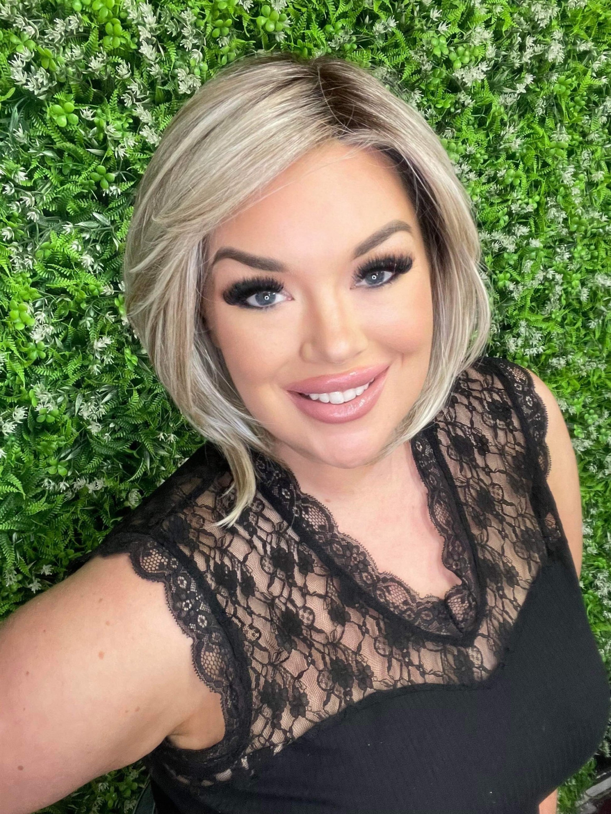 Meet Veronica. This wig is a stunning stacked bob with a swoopy bang. This gorgeous shortie is up for anything! Veronica features our beautiful Smoking Hot Blonde color.