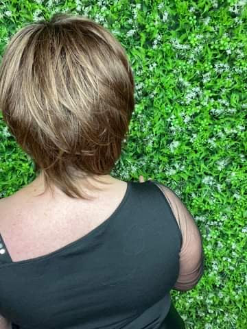 Meet Lola! This gorgeous pixie cut shag has an extended nape and plenty of face framing length on the sides to frame the face or be worn behind the ears. She is featured in our stunning Dark Amber color.